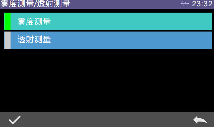 主菜單→測量模式→霧度測量/透射測量,選擇“霧度測量”,并點擊“√”,設置完成。